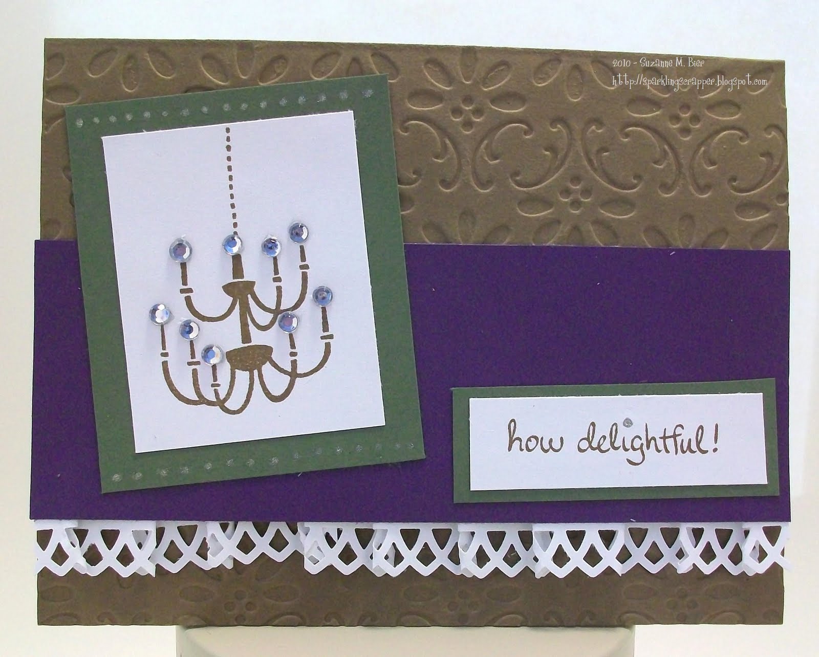 OMGosh, LOVE the sentiment with the chandelier! Too cute! Love the pleated punched border, too! Thanks for joining us for the Color Throwdown!