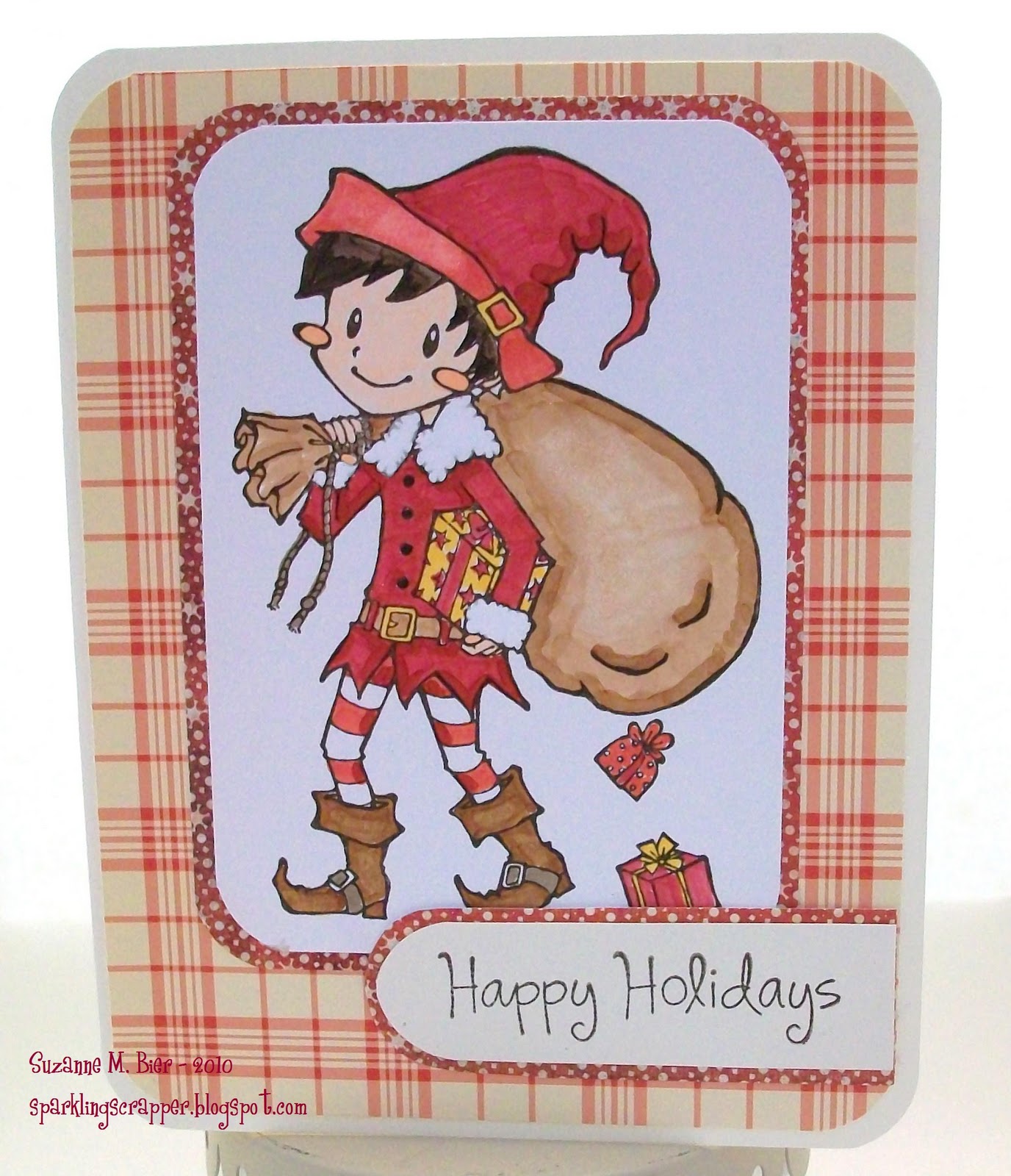 My card features a cute holiday image by Sparkle Creations Rubber Stamps and papers by October Afternoon and Basic Grey!