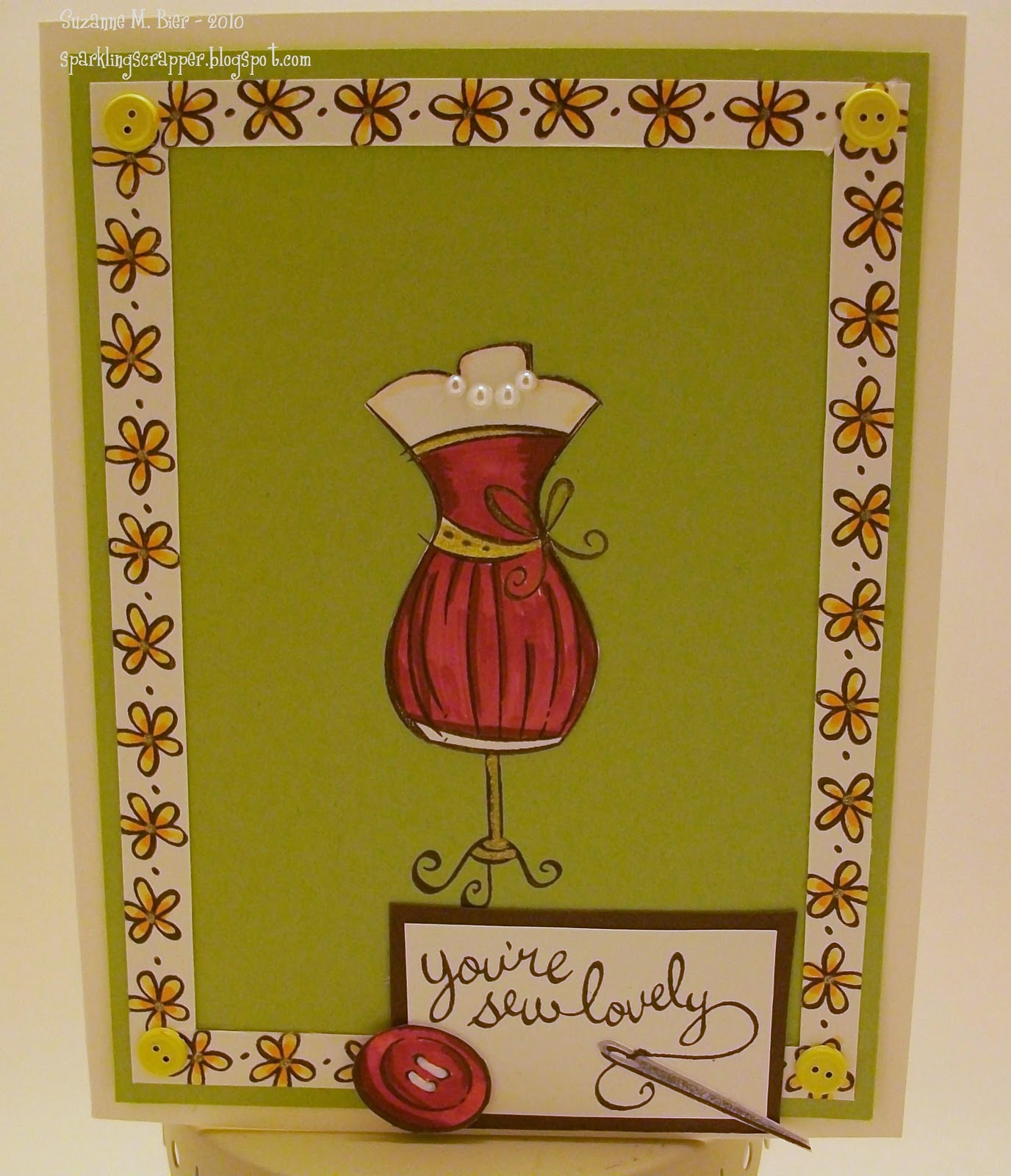Here’s my first card using their Sew Lovely stamp set (one of the first Lawn Fawn sets I bought, and still one of my favorites):