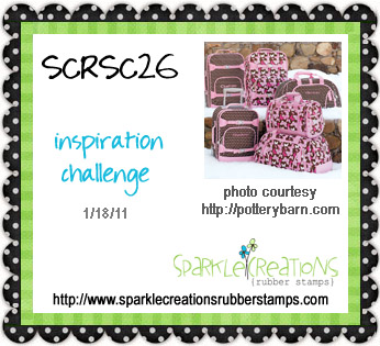 I love the inspiration photo for this week’s Sparkle Creations Rubber Stamps challenge and I thought Valentine Oliver would be great to use on my card! The prize for one lucky random winner will be the sweet Suitcase Ruby stamp!