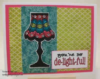 I colored the lampshade with three of the challenge colors after stamping the image in black. I think the papers I used were from the various mini pads of the Stella and Rose collection.