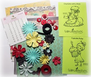 Cupcake Ruby is one of two stamps being awarded to one lucky challenge participant, along with the goodies in the picture below!