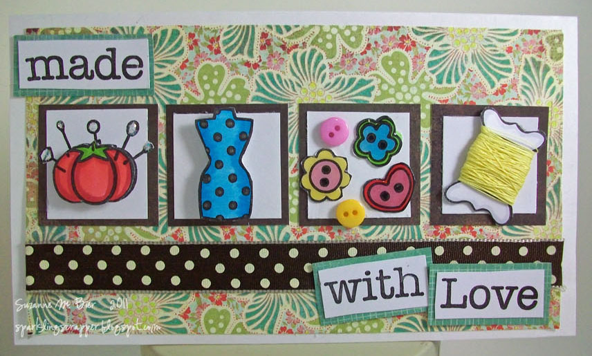 Once I figured out what images I wanted to use, it came together pretty quickly! The paper I used is from Basic Grey’s “Hello Luscious” collection. The stamp set is by My Little Shoebox, and the ribbon is from my stash.