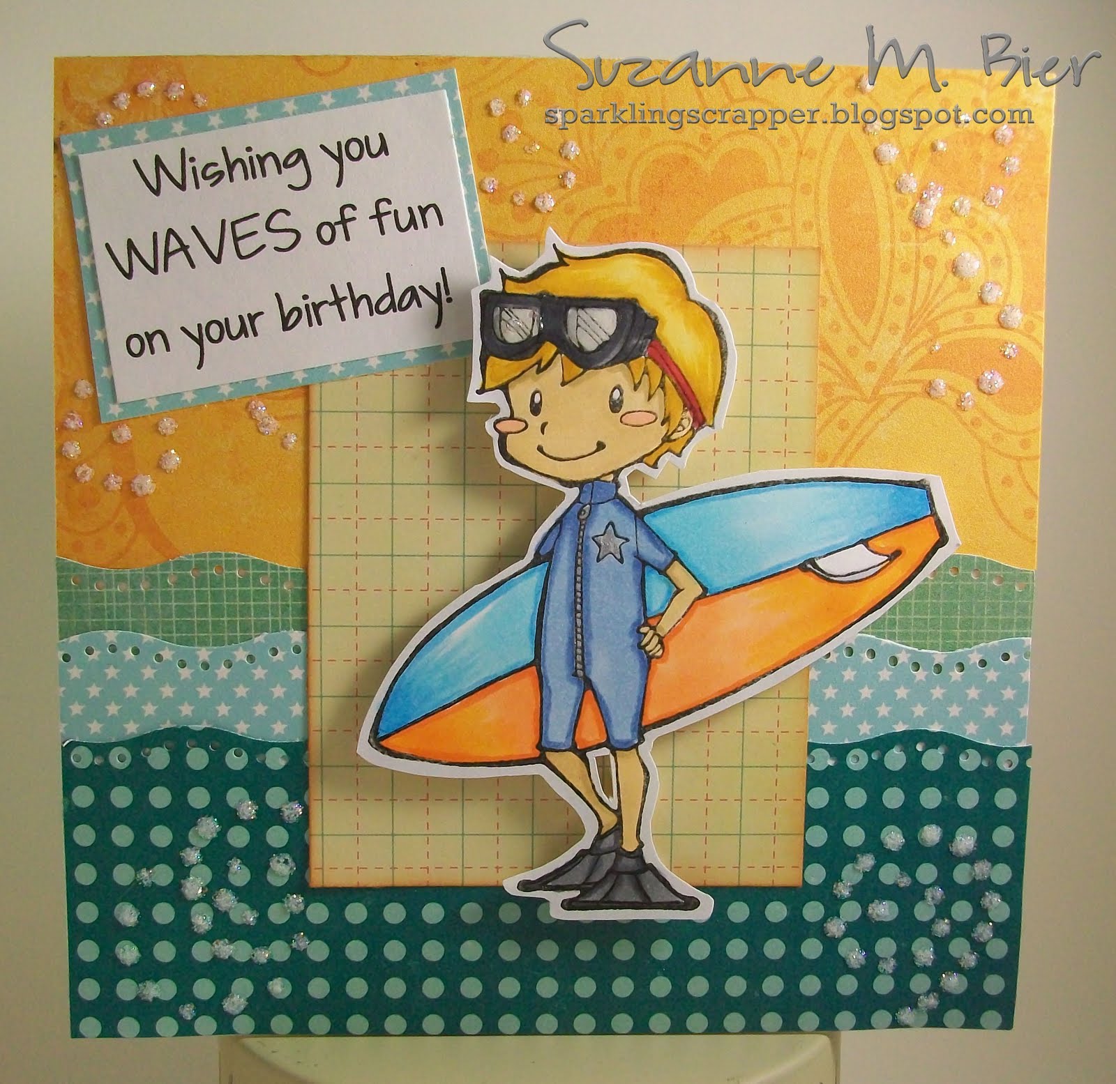 I lvoe boy cards and yours is just brilliant Suzanne!!! Great take on that sketch – love the waves!