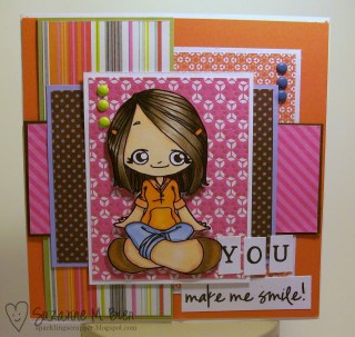 And here’s the card I created based on hers, which features Some Odd Girl’s retired digi “Relax Mae” :