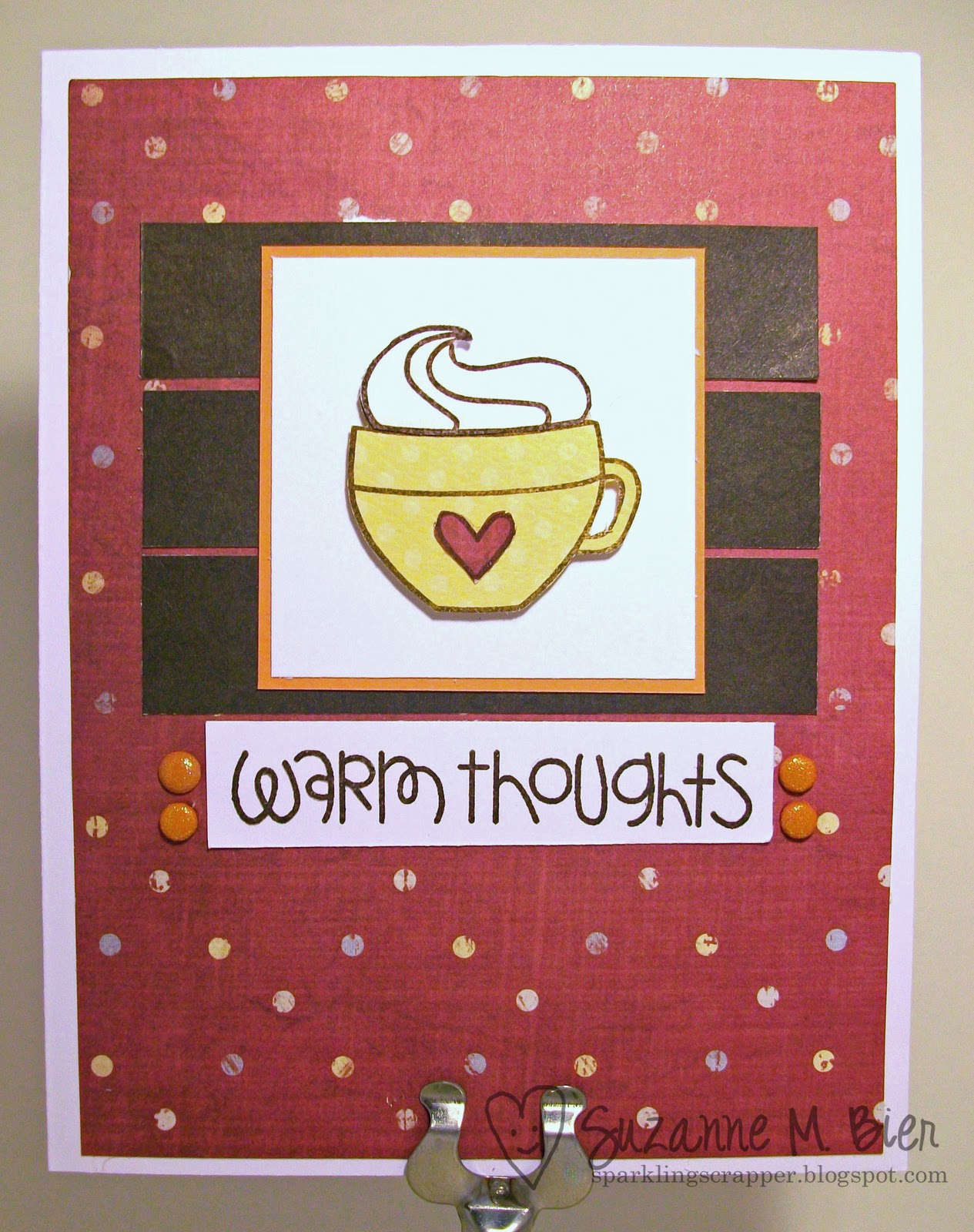 We’ve been having some crazy cold & rainy weather (with a tiny bit of snow thrown in) lately, so I’ve been in a hot tea and hot chocolate mood! That “warm” feeling inspired my colourQ card for this week: