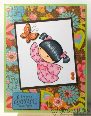 Aw, what a sweet card, Suzanne! Love your papers and the popped up butterfly. Congrats on being published too – how exciting! 🙂