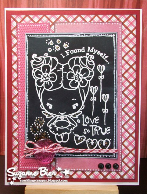 I’ve really been inspired by chalkboard-themed cards and art lately, and I thought that “Lovey Bean” would be great to use with that style! It’s a really easy technique to do, especially if you’ve heat embossed a stamped image before!