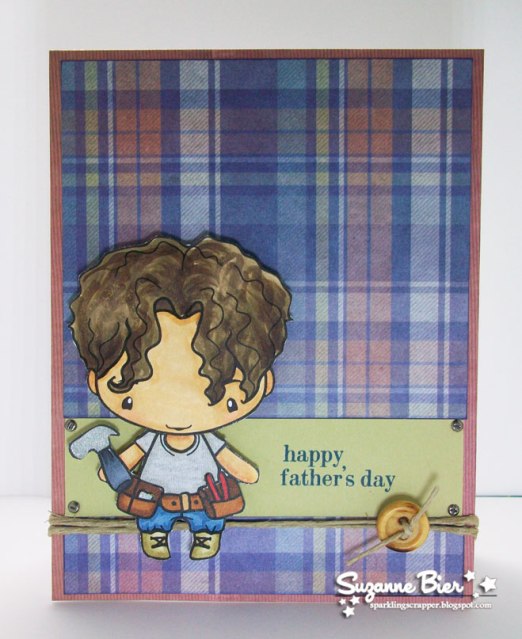 Since we’re making masculine cards this week, I thought the “Handy Ian” digi would be great to use, especially since Father’s Day will be here before we know it! (He’s still available in the TGF store!)