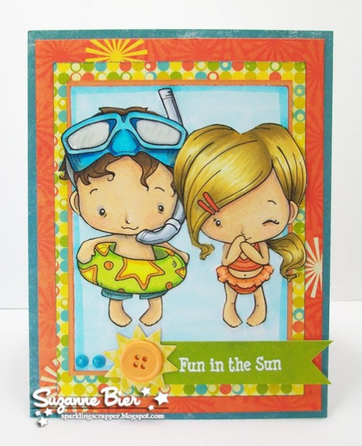 This week’s theme is “The Great Outdoors”, so I colored up the Oliver & Amelia “Summer Fun” images for today’s card: