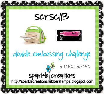 Hi, everybody! There’s a new challenge at Sparkle Creations Rubber Stamps…and it’s all about double embossing!