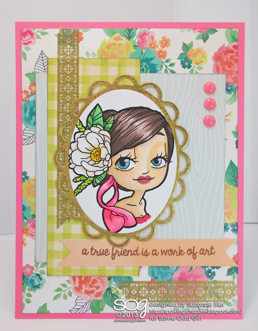Holy crow, Suzanne! This card is amazing! Love how you colored this sweet image, and what a great card design! TFS!