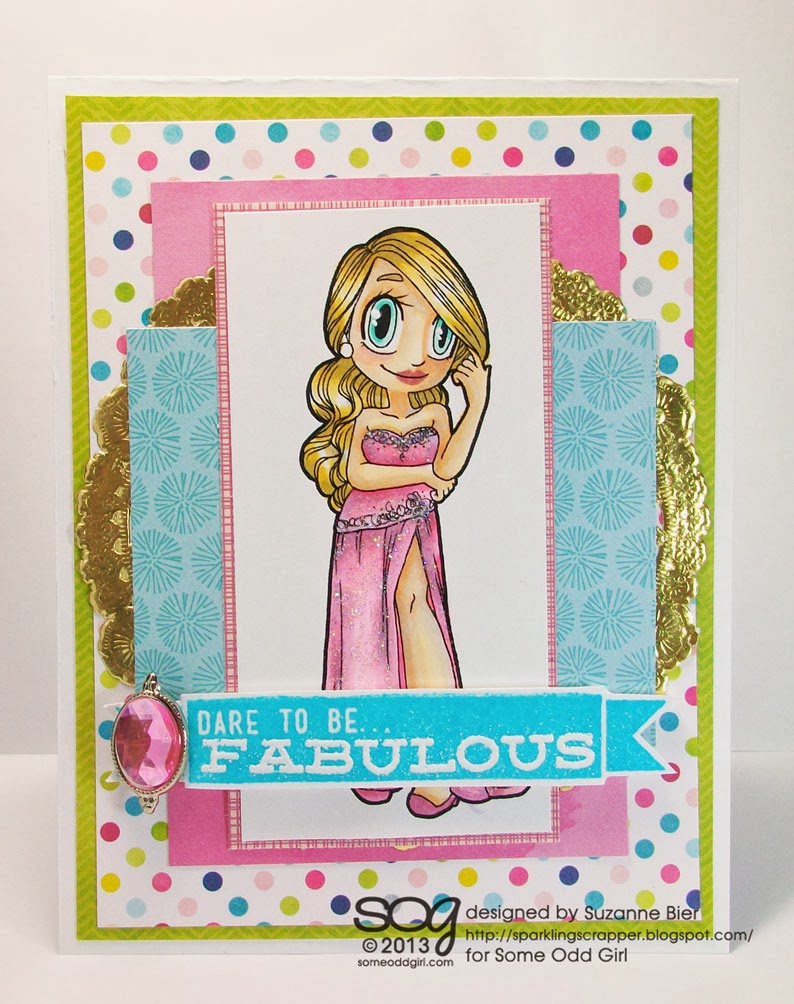 I used a sentiment from the “Dare to Be Gwen” clear set and one of the gold doilies that you can find in the “Odds and Ends” section of the SOG Store!