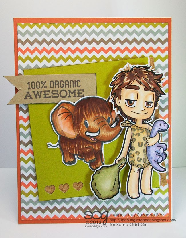 We’re also releasing two new digital stamps today, and I’m delighted to share my card featuring “Caveboy Tobie“! I used the sentiment from the “Hipster Kody” set, and altered one of the elephants from the “On Safari” set into a wooly mammoth to hang out with Tobie!