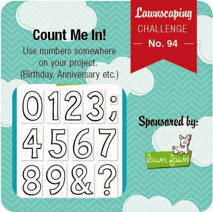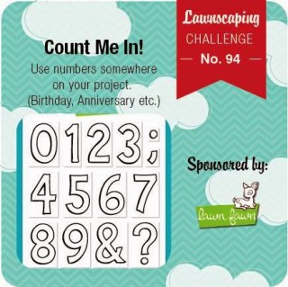 Hi, everybody! I’m stopping in today to share my card for the current Lawnscaping challenge! The theme for this one is “Count Me In“, which means to include numbers somewhere on your project.