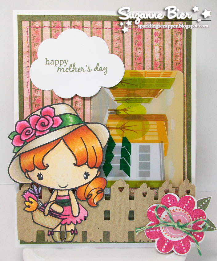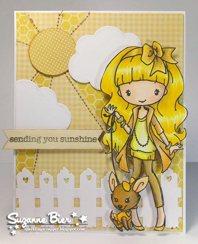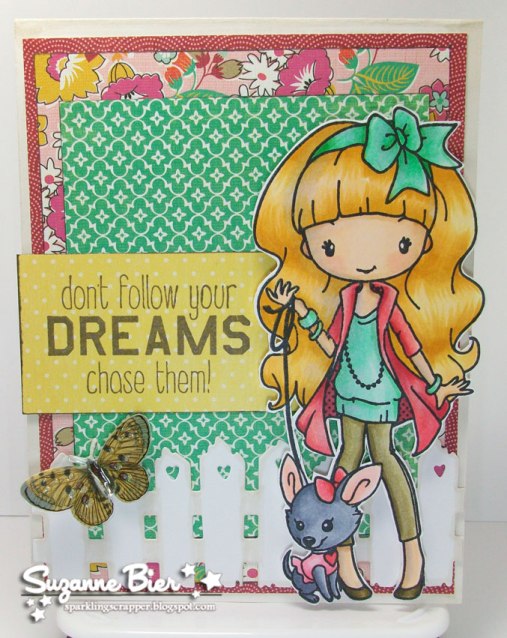 Because the main image had so much going on, I decided to keep the rest of the card design fairly simple. The sentiment I used is one of the two included in the “Anya Strolls” set.