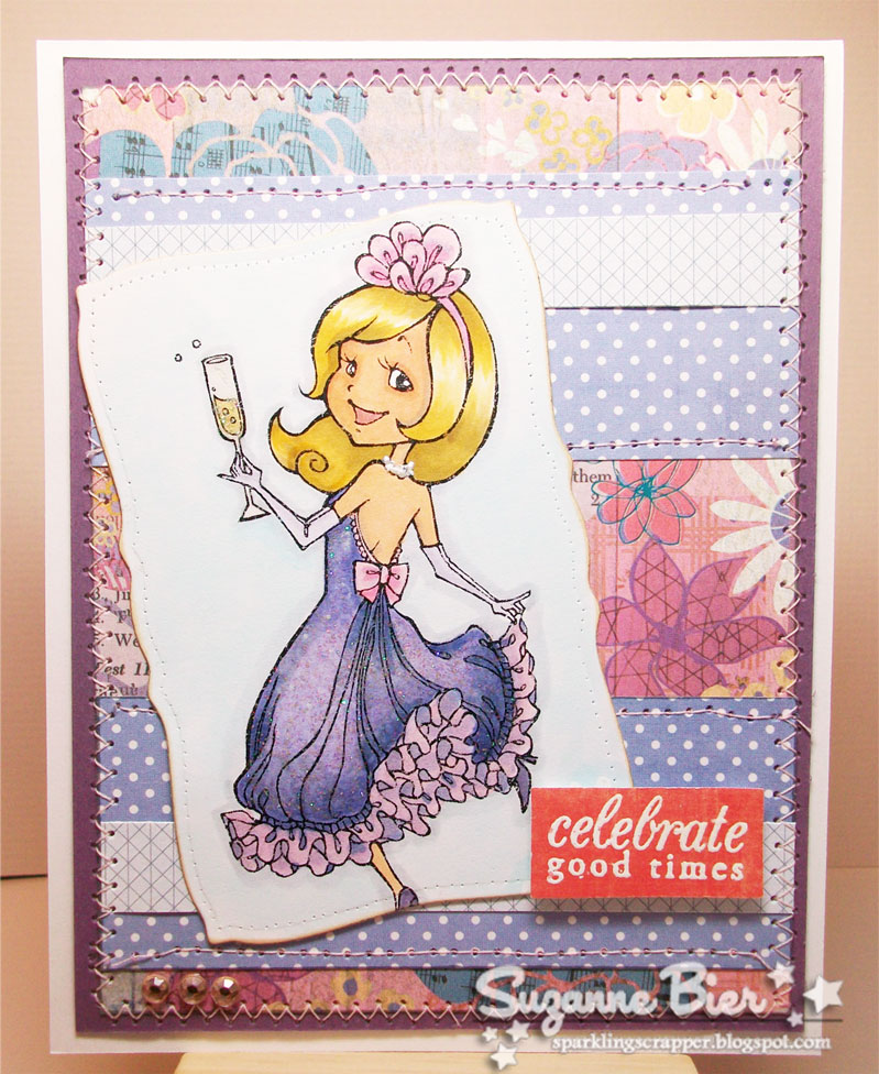 I used one of the stick stamps from the “Love You S’more” set and used my Copics to draw little branches off of the stick and thicken it a little. (The champagne glasses can be found in the “So Much to Say” set.)