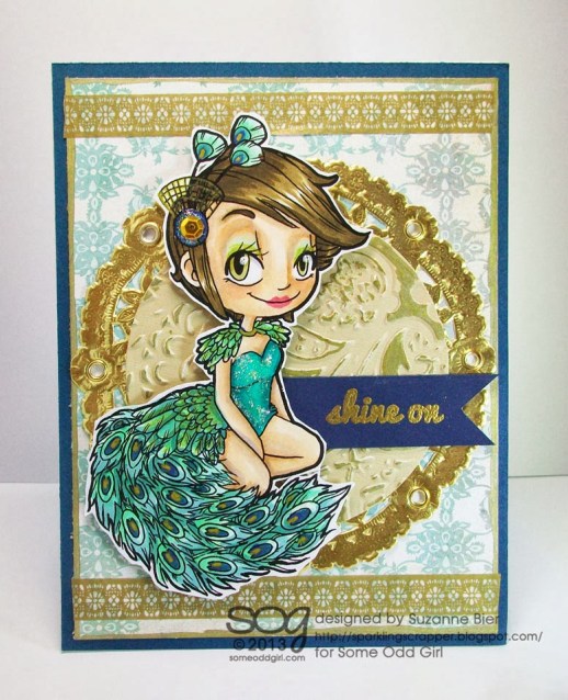 Instead of coloring the skunk with Copics, I stamped it in a dark grey ink and used black Memento ink with a water brush to create a watercolor look.