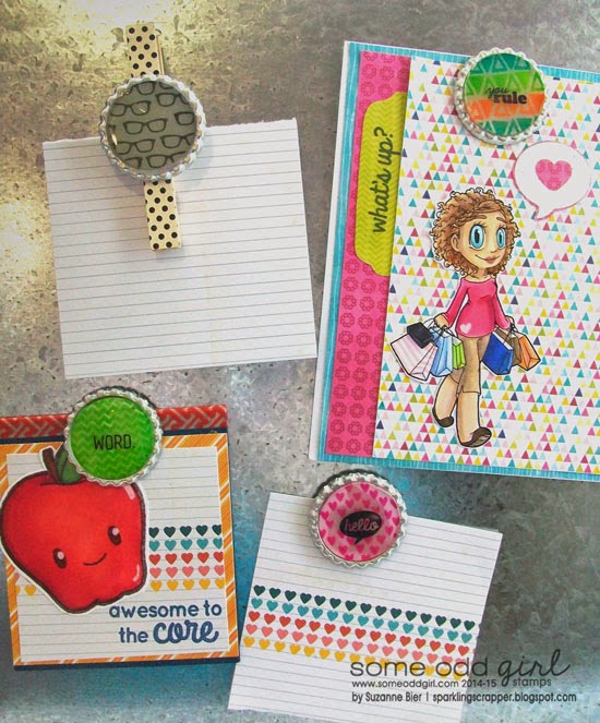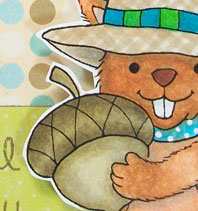 To make the worm in a jar, I stamped the jar, worm and branch on a transparency with permanent ink. I stamped another worm and jar lid on white card stock, then colored them both in. Both pieces are attached to the back of the transparency.