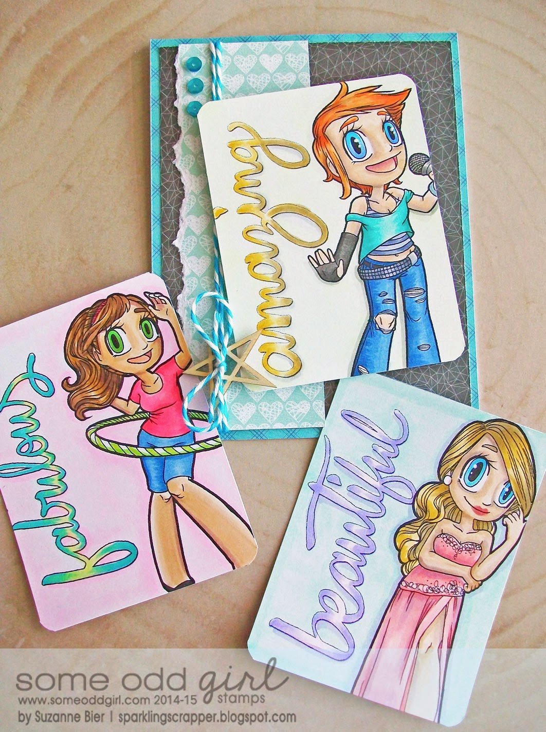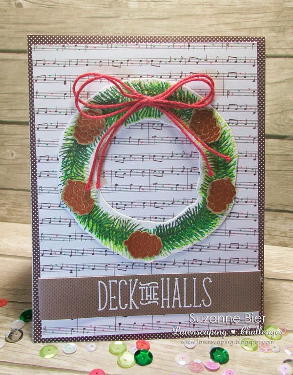 Hi, everybody! It’s my turn to post today at the Lawnscaping challenge blog and I’m sharing some cards that I made recently. Since the current challenge is to add dimension to your card, I challenged myself to come up with alternate ideas for adding dimension without using foam tape or a lot of layers.