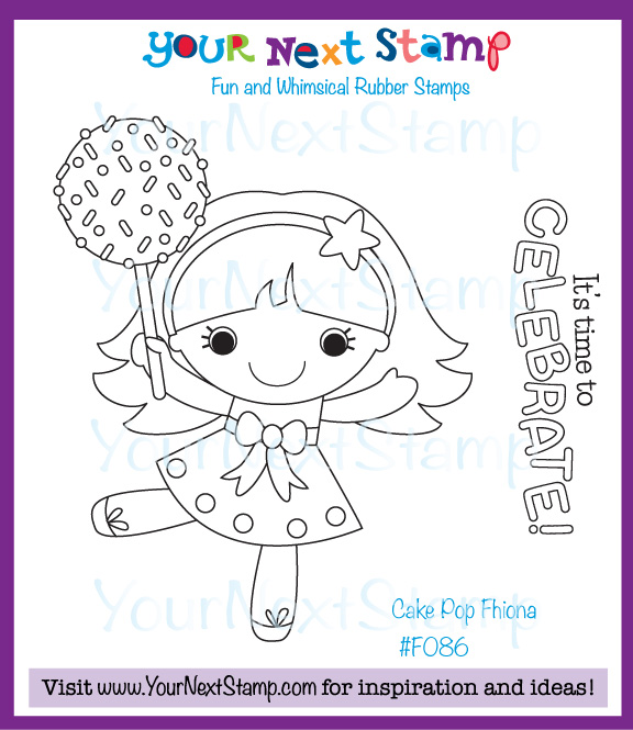 My sneak peek project features “Cake Pop Fhiona”, who comes with a matching sentiment that you’ll see on my card: