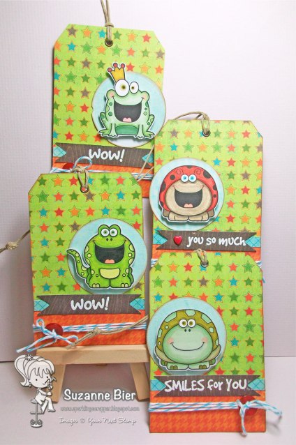 My project features a fun set of stamps from the release, “Smiley Happy Critters Set 1.” I made tags with these, but they’d also be great on lunchbox notes, bookmarks, or a card to bring a smile to your special somebody!