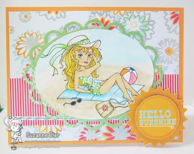 Our month-long theme is “Summer Fun,” and here’s my card, which features “Ellie Loves the Beach“: