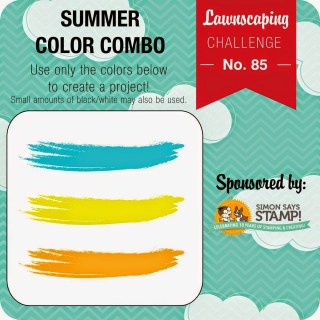 Hi, everybody! I’m back to share my entry for the current challenge at the Lawnscaping Challenge blog, which is a color combo challenge (blue, orange, and yellow)!