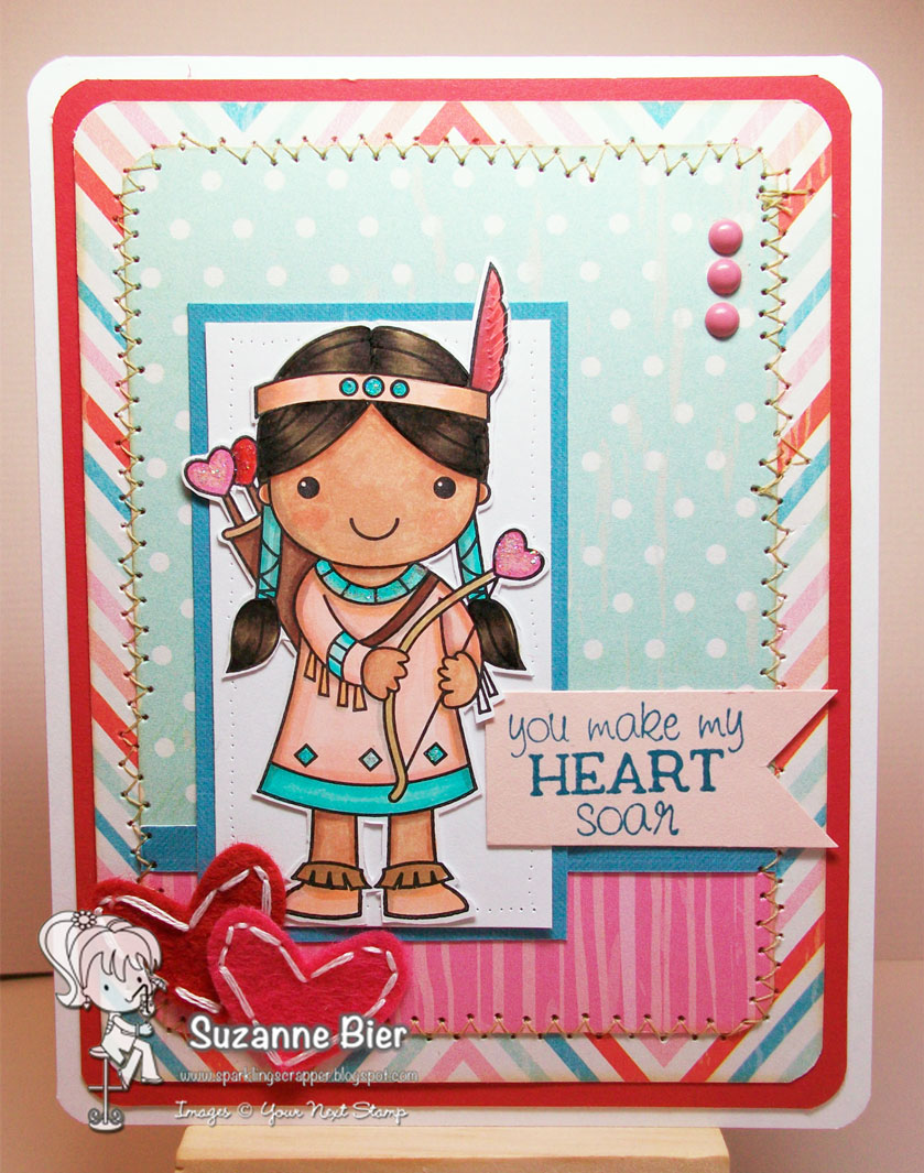 I picked “Brooke from the USA” for my card this week (the sentiment is from YNS’s “You Make My Heart Soar” set):
