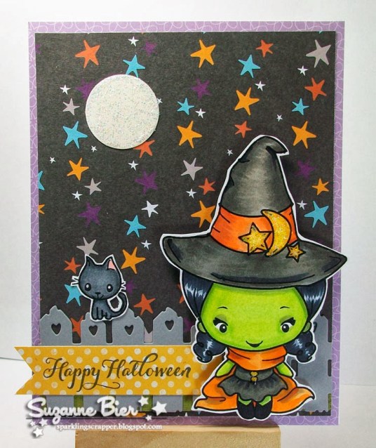 This week, we’re inspired by Halloween colors, so I’m featuring the “Hallobean” digi stamp and the TGF Fence Die on today’s card: