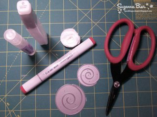 I often color the coffee filters before die cutting them with the chisel end of an alcohol marker. I spray colorless blender solution on the filters and rub it in so that the solution soaks the ink and the paper.